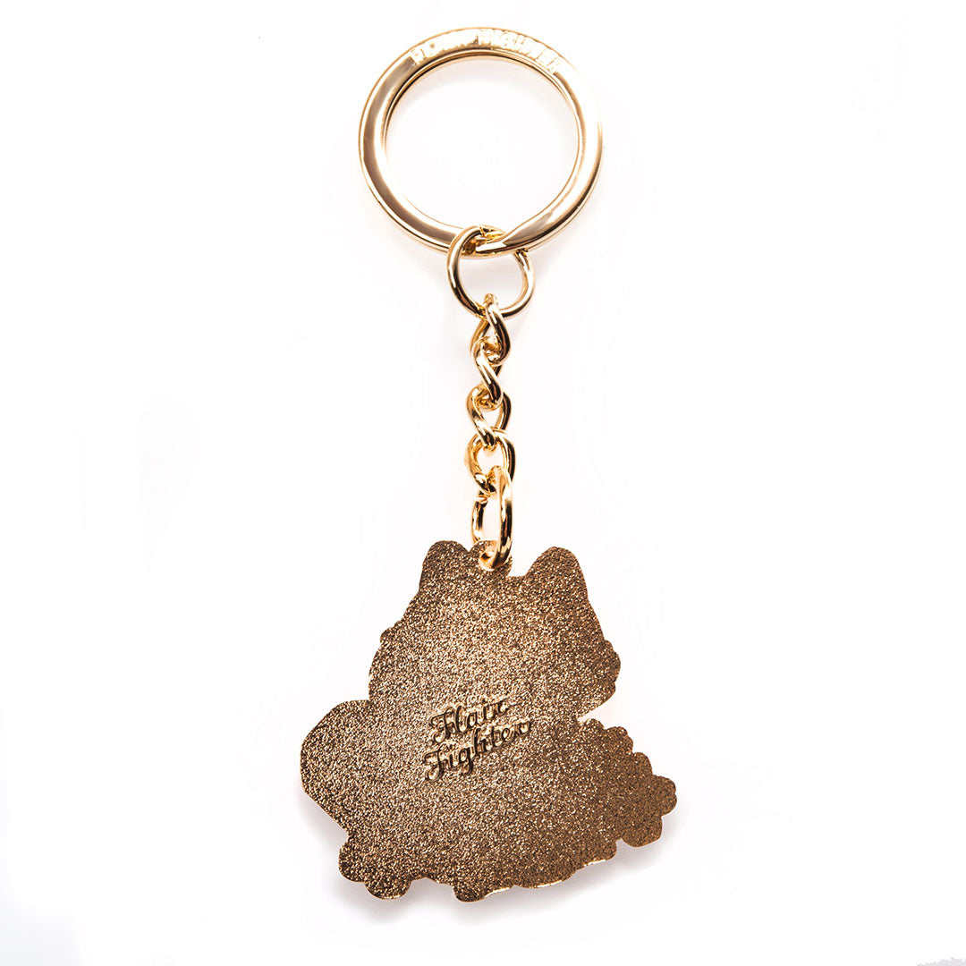Crafted with hard enamel and finished with gold plating, this enamel keychain charm measures approximately 1.38" (35 mm) on its longest side. Its authenticity is guaranteed by the Flair Fighter back stamp on the back of the keychain and keyring.